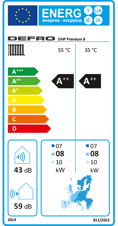 Die Defro DHP Wärmepumpe steht für eine sichere und schnelle Installation Die Wärmepumpe DHP Premium ist speziell für einen einfachen und sehr schnellen Elektro-Anschluss ausgelegt. Die Außeneinheit wird mit dem Hydromodul über das mit der Wärmepumpe gelieferte Kabel schnell verbunden und das Hydromodul wird über ein steckerfertiges Kabel an das 3-Phasen-Netz angeschlossen. Die Kabelverbindungen sind im Lieferumfang. Durch unsere Lösung werden Fehler bei der Elektroinstallation ausgeschlossen und die Installationszeit wird erheblich verkürzt. Ab sofort ist nach dem Kauf einer Defro Wärmepumpe ein Montageservice kurzfristig möglich - Jetzt informieren! Vorteile der Defro Wärmepumpe: Energieeffizienzklasse A++ bei 55°C Vorlauftemperatur Moderne, intuitiv bedienbare Steuerung Internetmodul für eine App-Steuerung oder Steuerung im Webbrowser Integrierter Stromzähler Hohe Leistungszahl bei niedrigen Außentemperaturen Betrieb bis -25°C Außentemperatur inkl. Kühlfunktion Bauteile aus deutscher Herstellung Emerson Verdichter Hydromodul HF mit Umwälzpumpe, Umschaltventil und Elektroheizung 6 kW Technische Daten Wärmepumpe DHP-Premium-HF 8 kW: Heizleistung / COP bei A7 / W35*: 7,9 kW / 4,8 Heizleistung / COP bei A2 / W35*: 6,1 kW / 3,8 Heizleistung / COP bei A-7 / W35*: 5,4 kW / 3,2 Heizleistung / COP bei A-15 / W35*: 4,5 kW / 3,0 Energieeffizienzklasse (Vorlauftemp. 35°C): A++ Energieeffizienzklasse (Vorlauftemp. 55°C): A++ Min. / Max. Heiztemperatur: 10°C / 65°C Kältemittel/ Gewicht des Kältemittels (R290): 1,4 kg Verdichter: Emerson Copeland Scroll Min. / Max. Umgebungstemperatur: -25°C / + 35°C Max. Schallpegel Außenbereich / Nachtsmodus: 59 / 43 dB Stromversorgung: 3 x 400 V, 50 Hz Leitungsschutz: C 20 A Gewicht - Außeneinheit: 209 kg