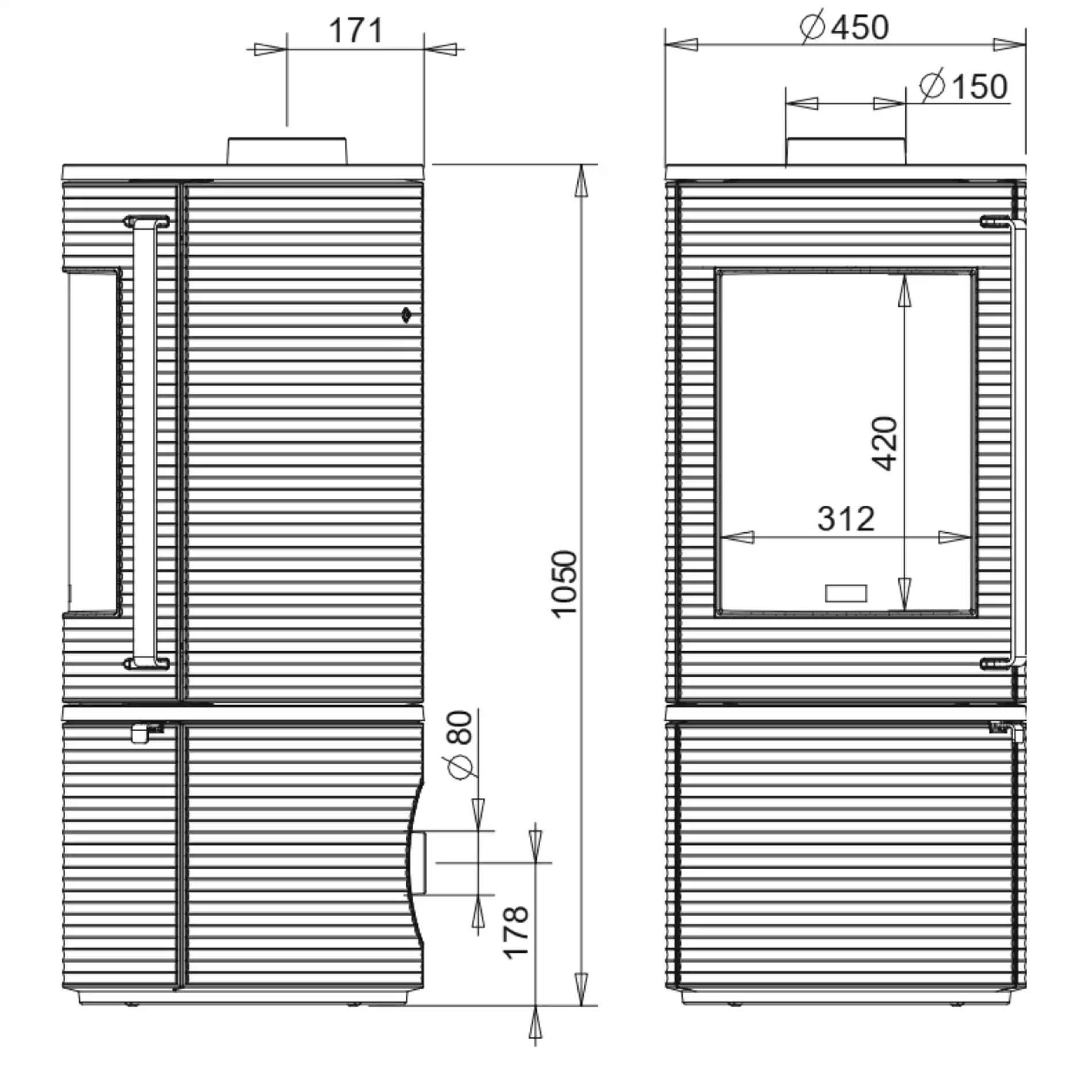 - Abgasanschluss: oben, Ø 150 mm